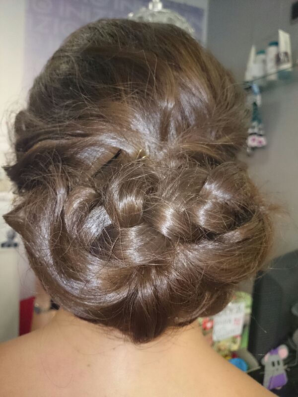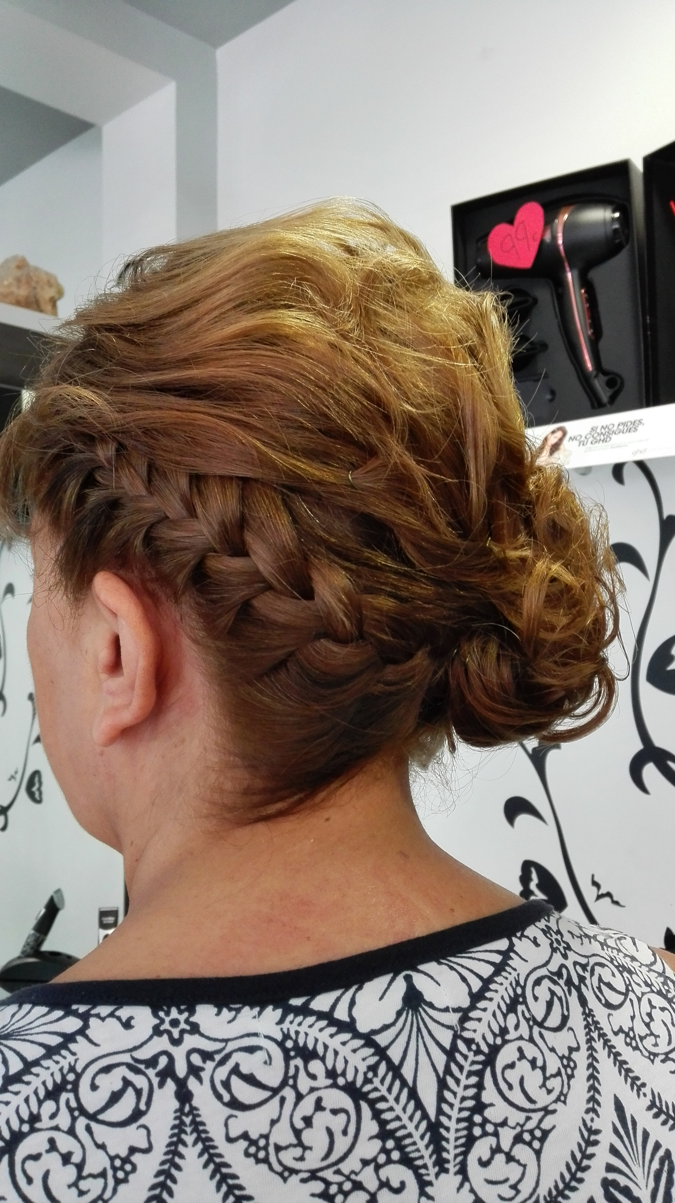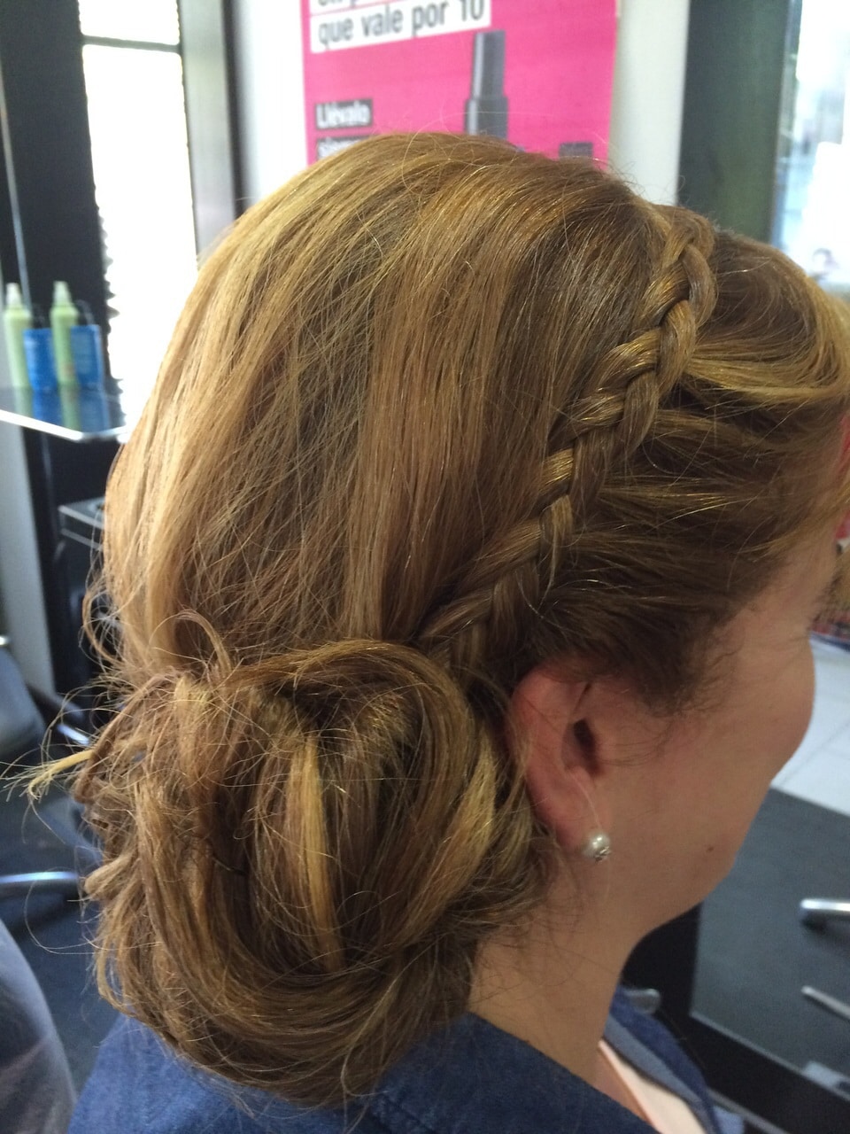 Del mismo estilo pelo algo más simple, encontramos a otra clienta , que opta por una trenza-coleta.